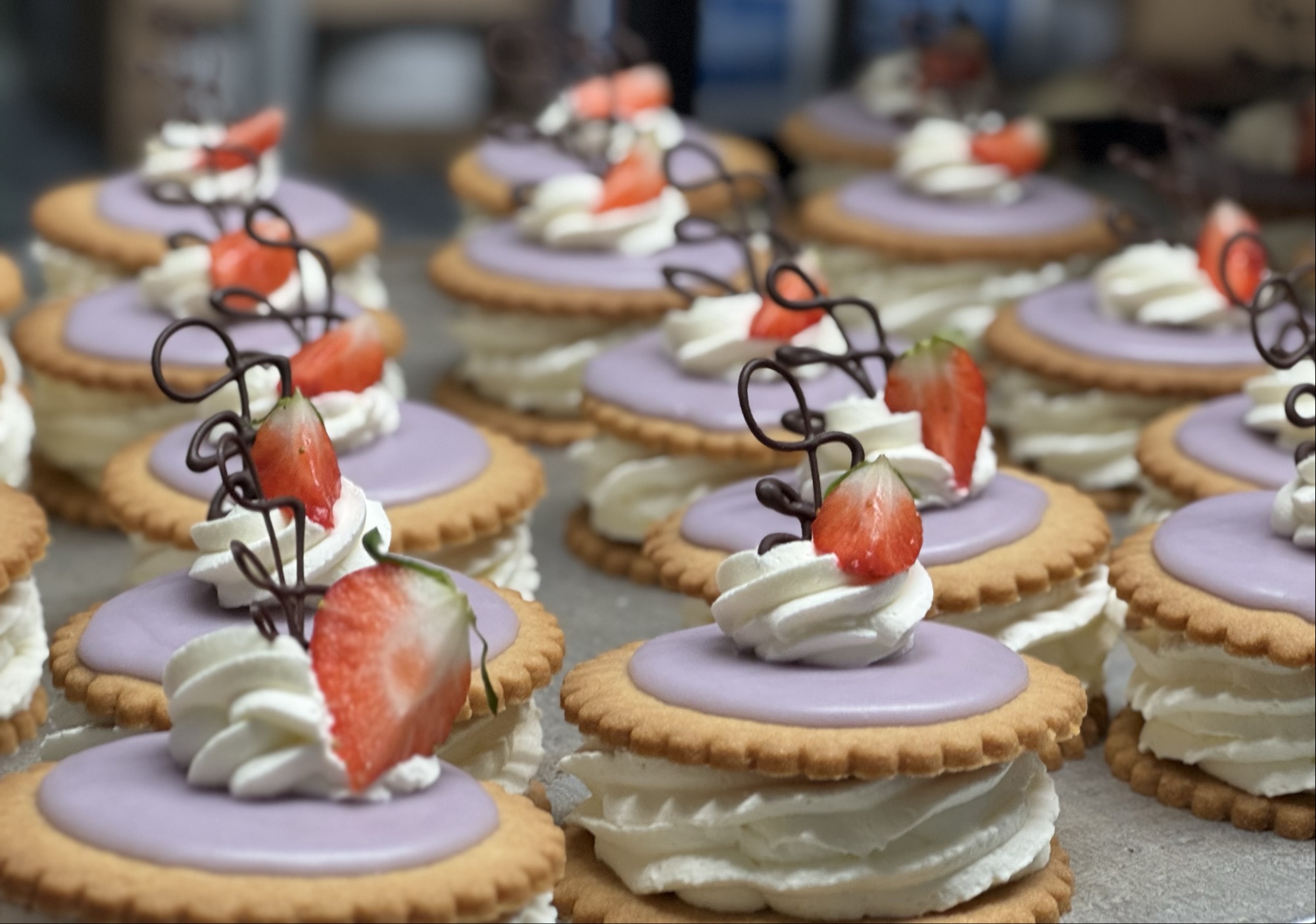 Medalje med Vaniljecreme- Hindbærmarmelade og Fløde